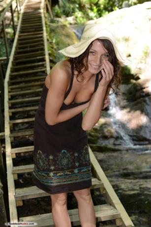outdoor brunette dress upskirt