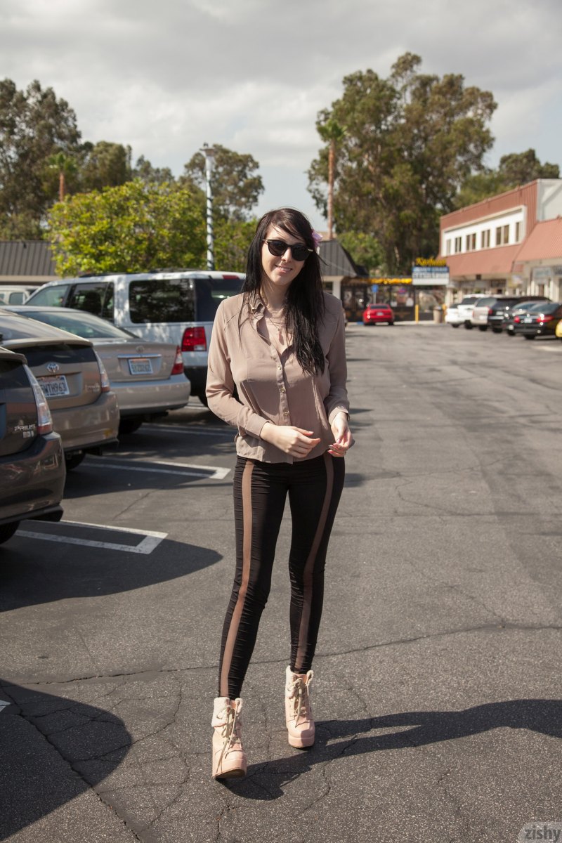 outdoor black hair boots glasses big tits navel piercing big tits glasses