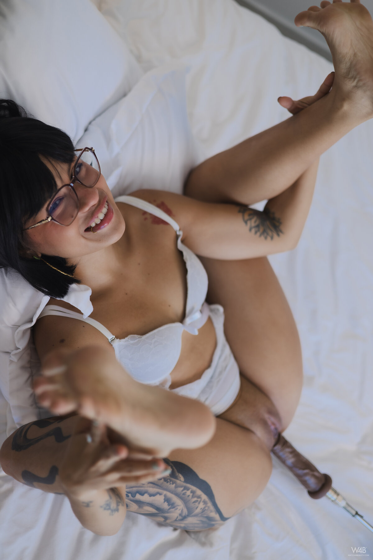 lingerie black hair latina masturbation tattoo toys feet asshole toes glasses short hair big ass close up pussy