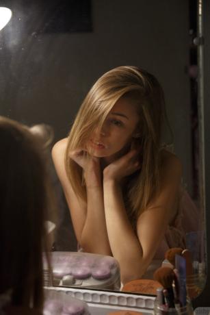 babe lingerie glasses posing christmas