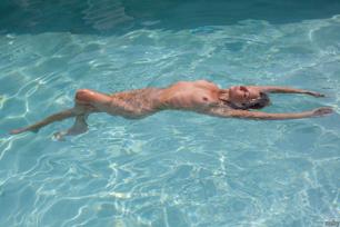 blonde blue eyes pool blonde blue eyes pierced nipples see through swimsuit sunglasses