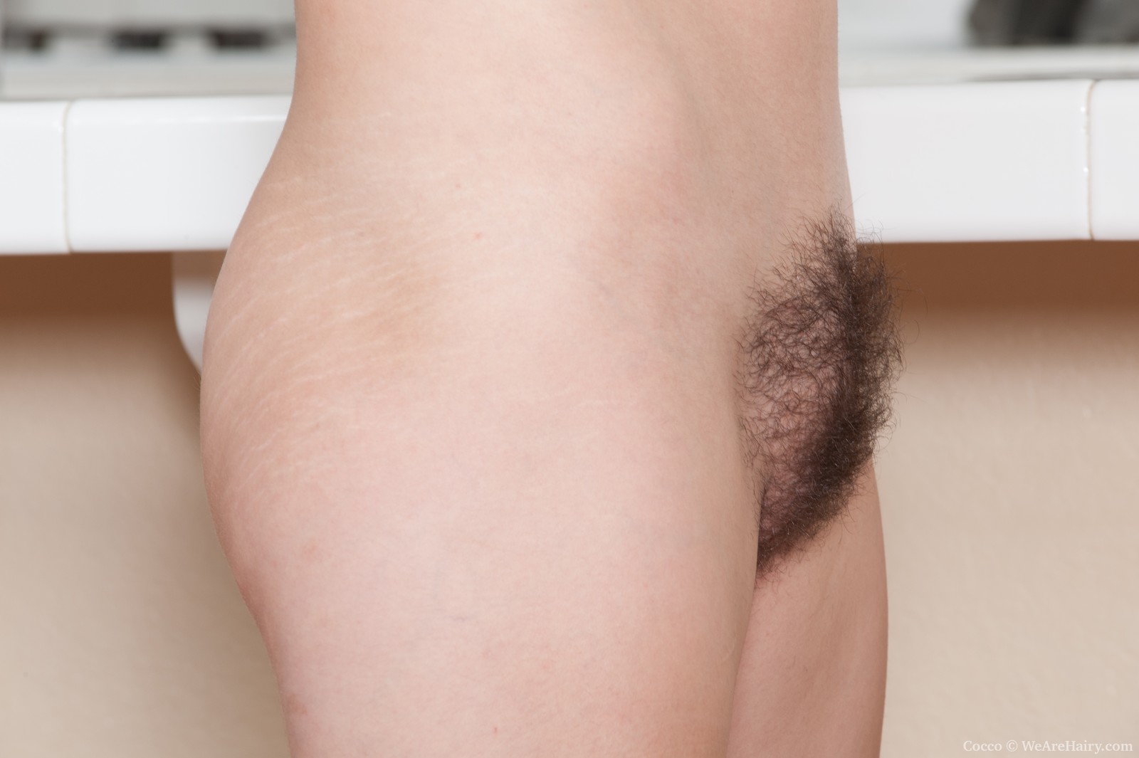 Cocco in We Are Hairy set Cocco strips in kitchen and plays with hairy pussy