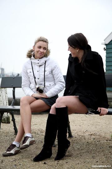 outdoor blonde brunette lesbian public blonde lesbian