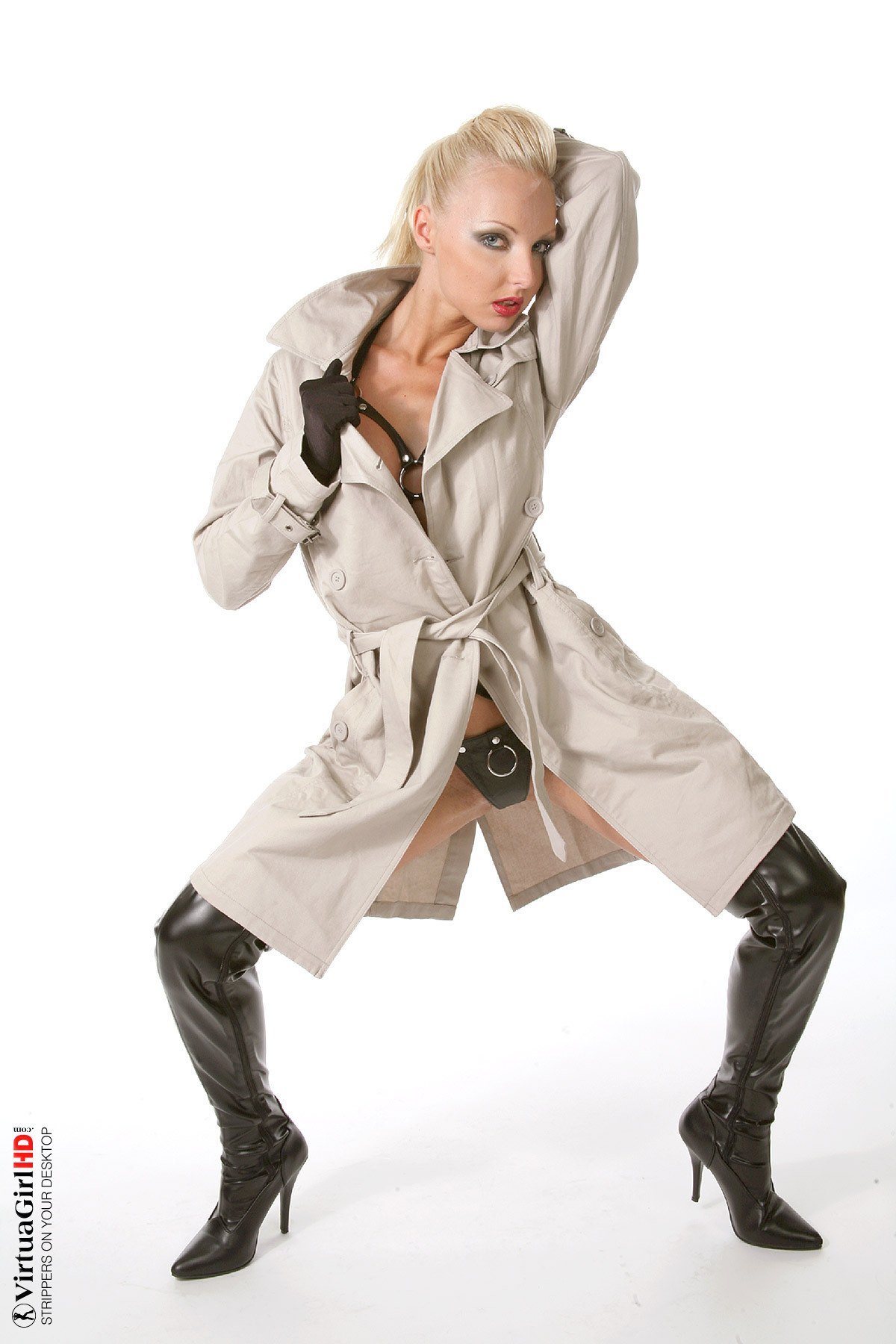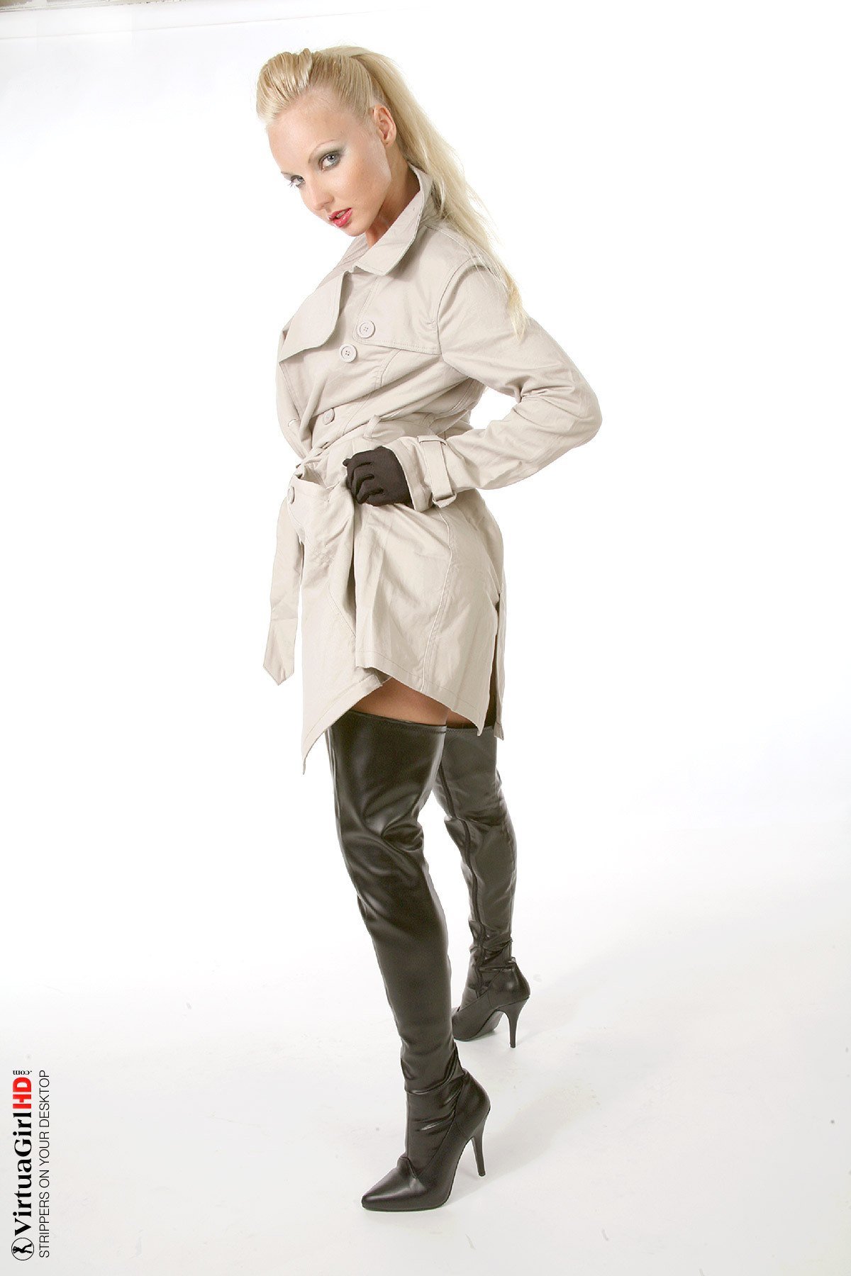 blonde high heels boots pussy spread