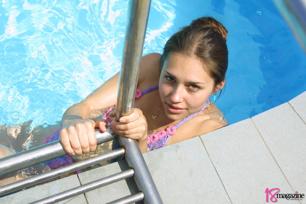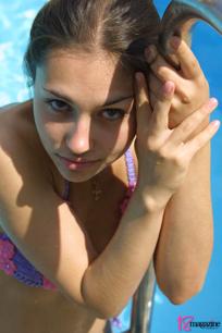 outdoor brunette wet bikini navel piercing pool