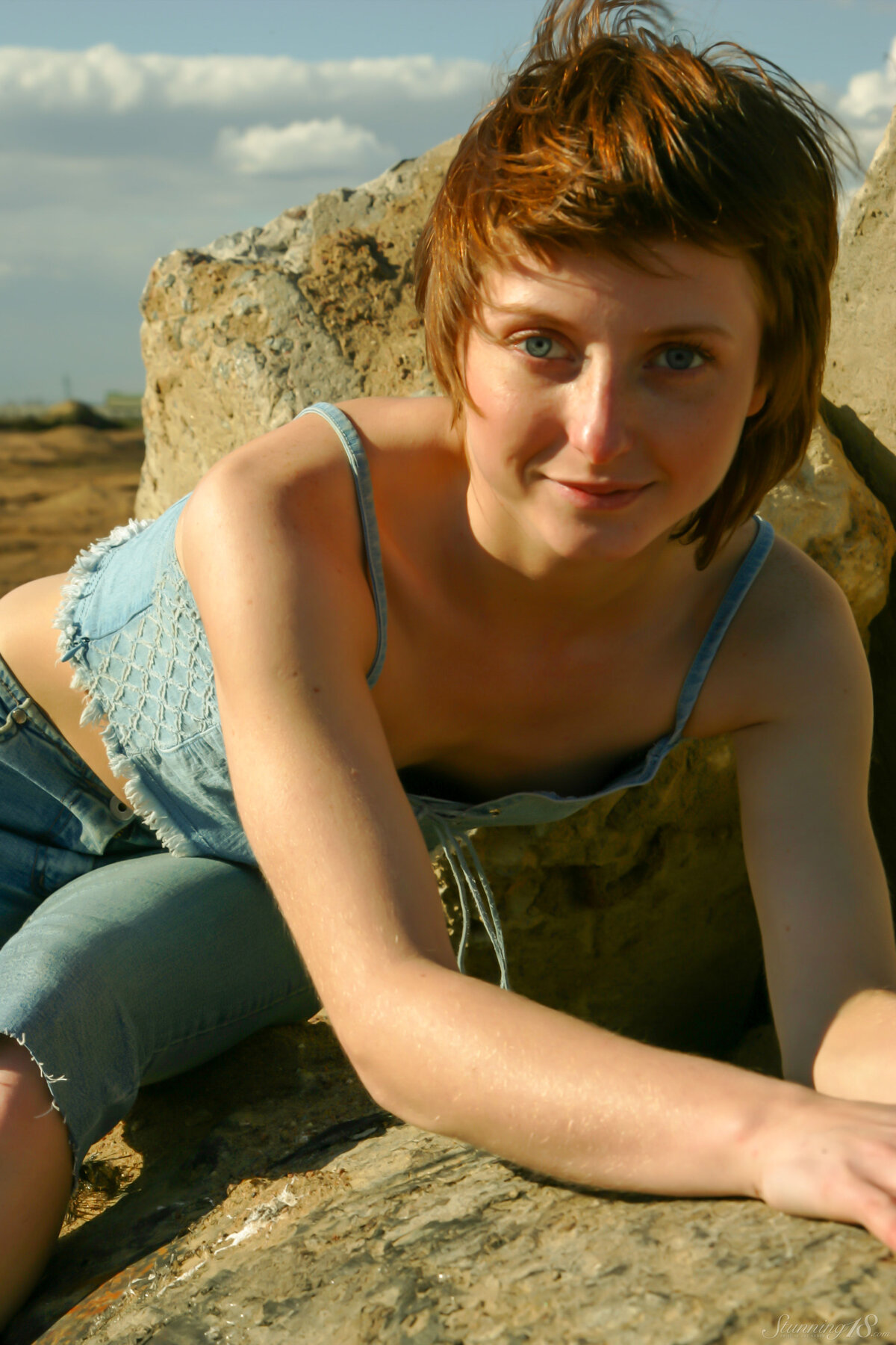 babe outdoor spreading short hair
