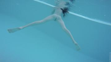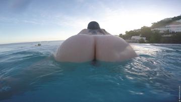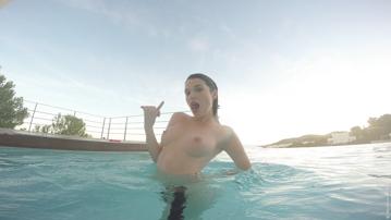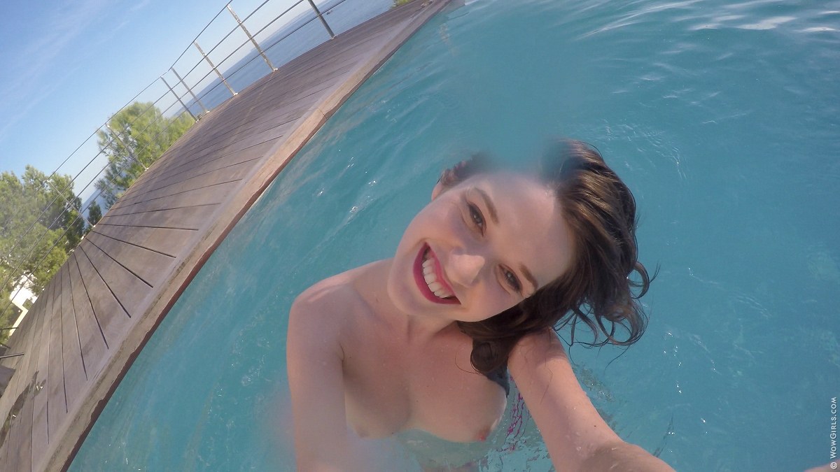 outdoor brunette posing pool