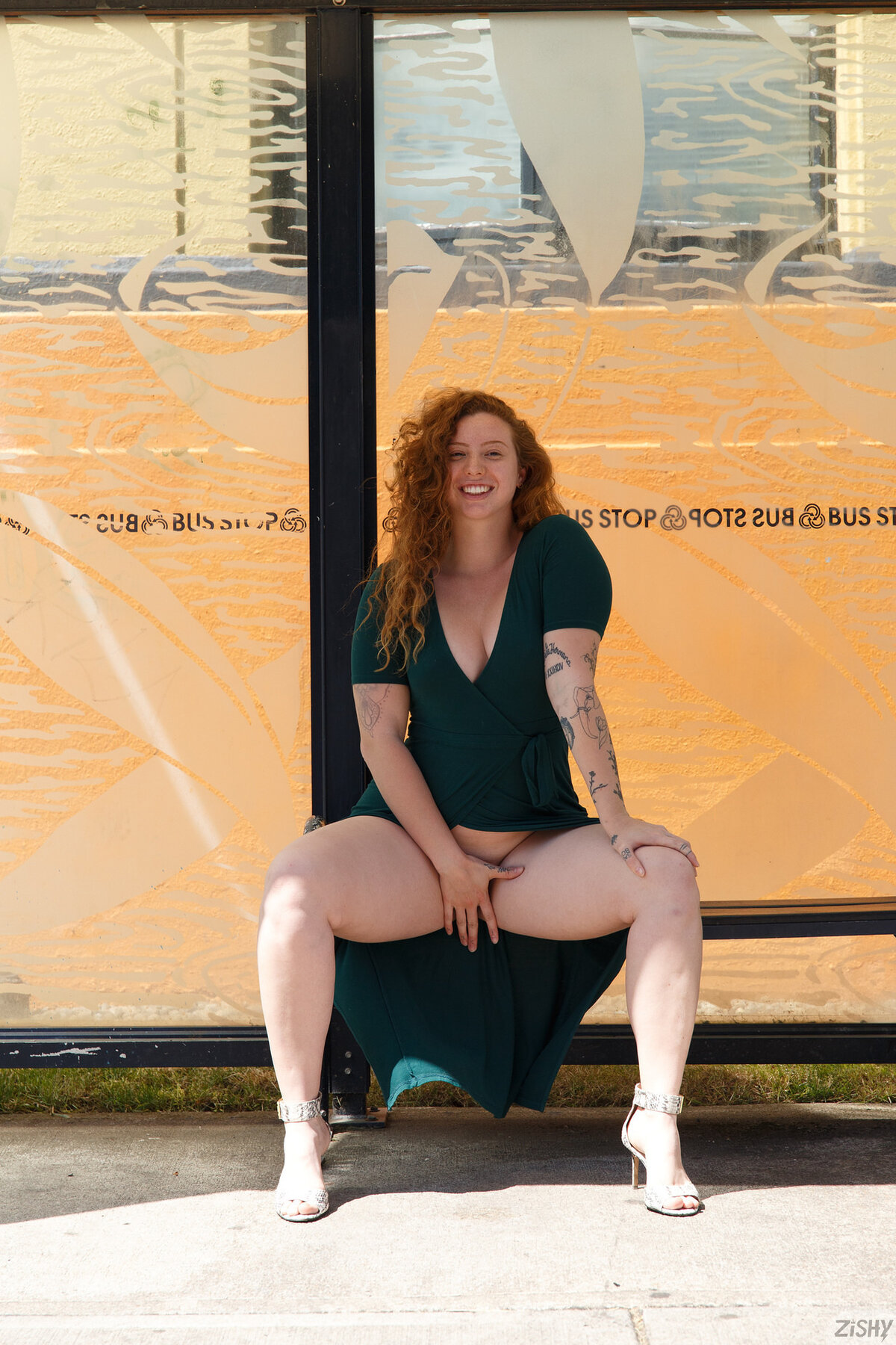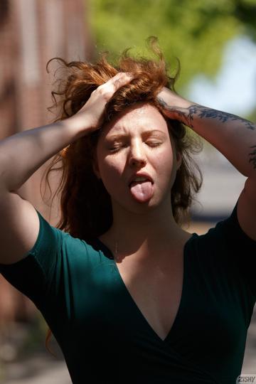 babe redhead spreading tattoo public curly redhead