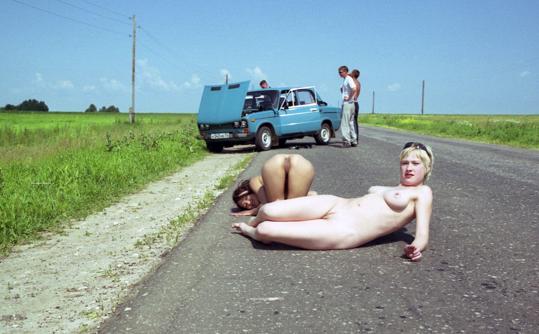 Lesia and Mina in Nude In Russia set Car Trouble