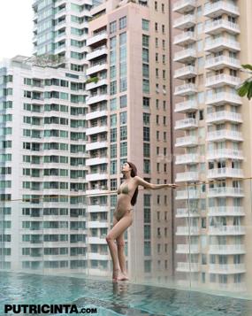 babe outdoor black hair posing cute bikini asian pool