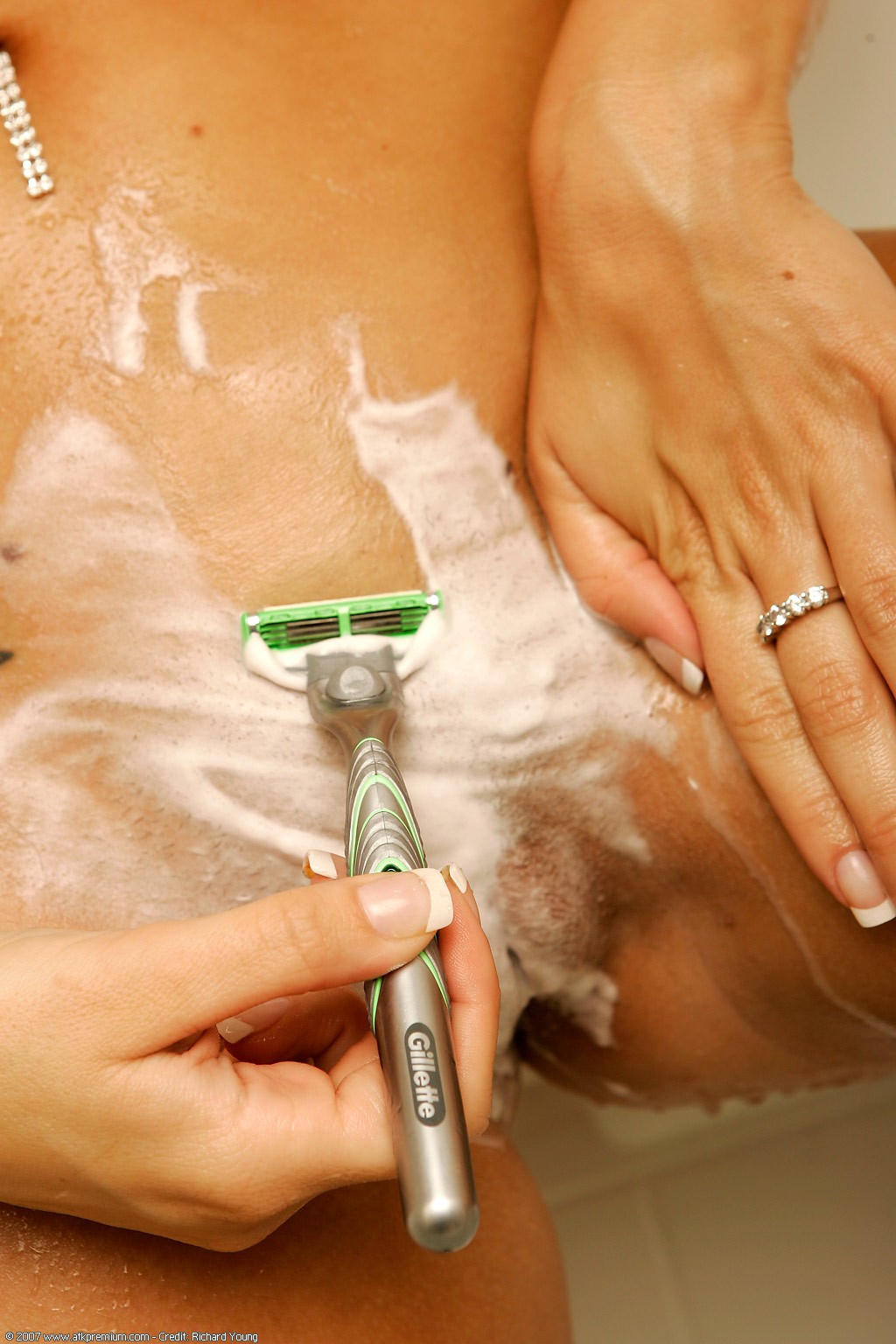 blonde wet navel piercing