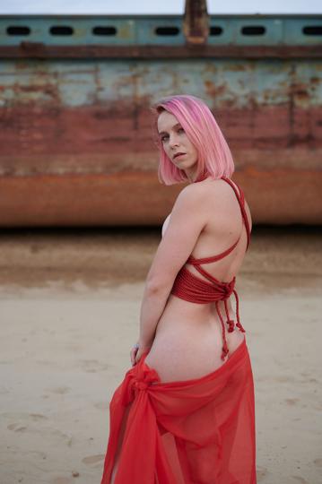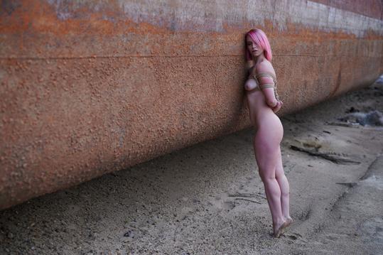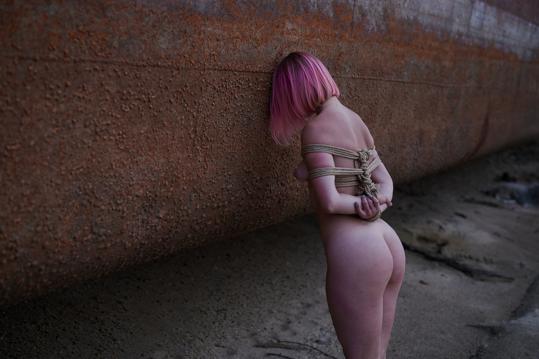 outdoor spreading bondage tied up pink hair