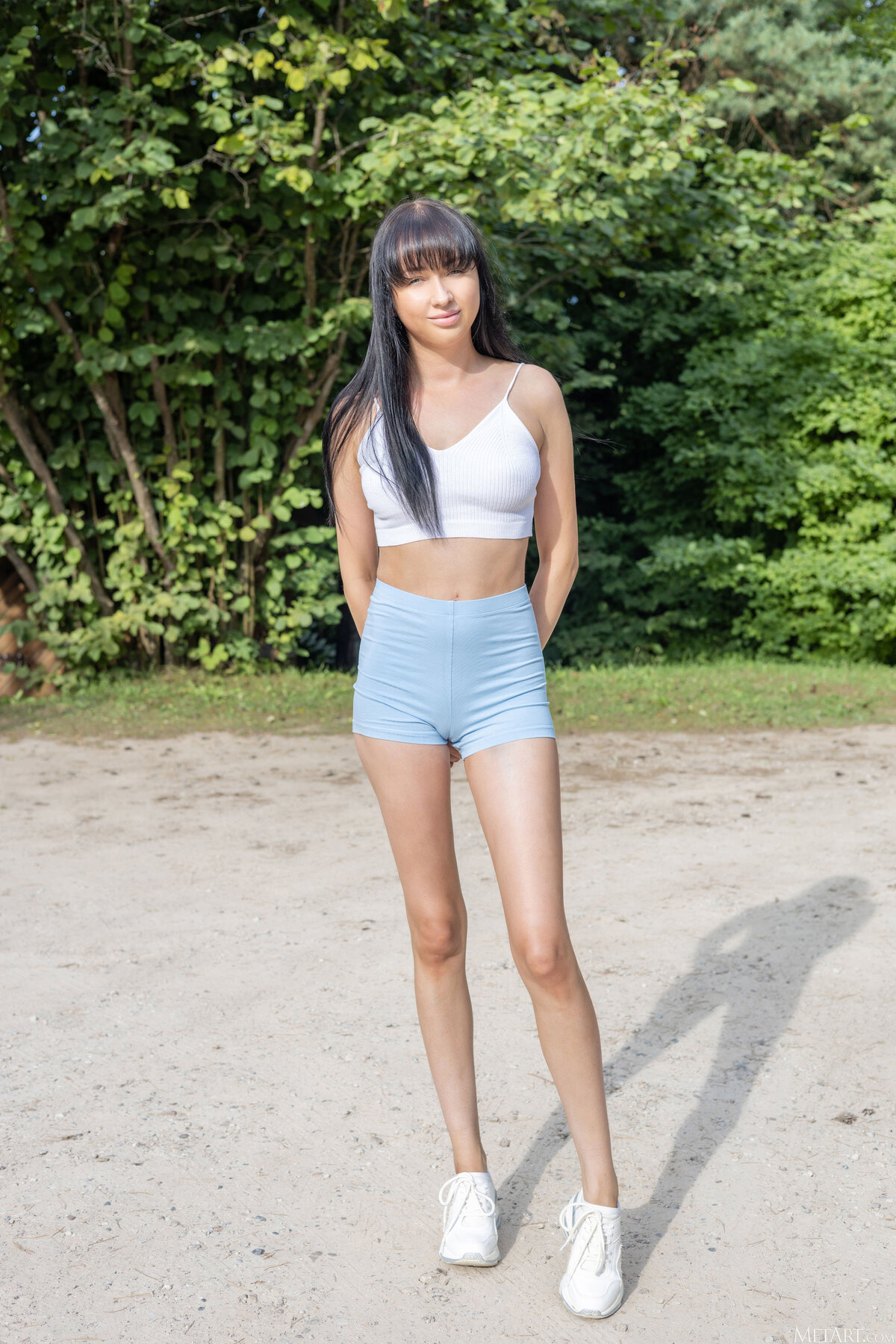babe outdoor black hair feet asshole legs sneakers